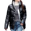 Glänzende Winter-Daunen-Baumwoll-gefütterte Jacke für Damen, dicke, leuchtend schwarze, kurze, glänzende Jacke, gelb-rote Baumwoll-Parkas-Oberbekleidung