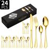 Edelstahl-Besteck 24-teilig Western-Besteck Steakmesser Gabel Löffel Geschenkbox Besteckset