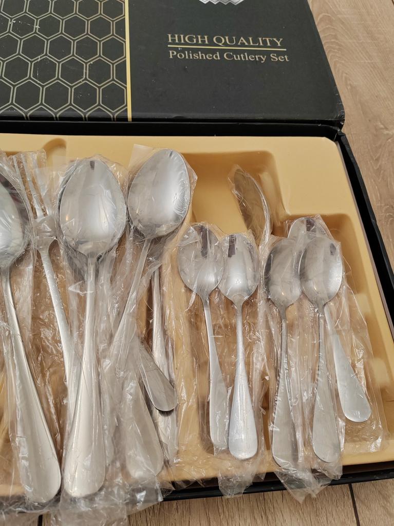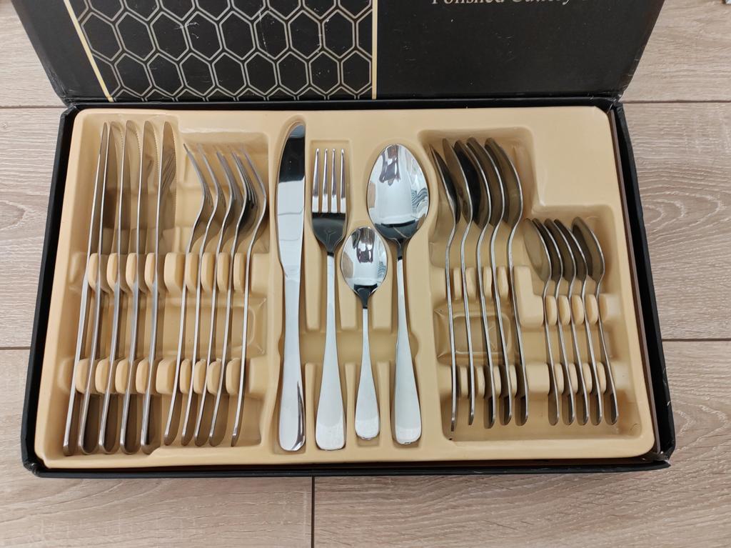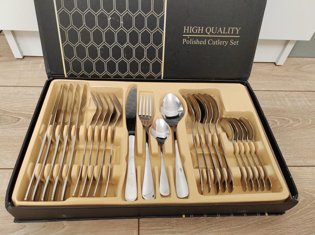 Küchenbesteckset 24-teilig für 6 Personen. Wunderschönes Besteck aus Edelstahl. Geschenkset aus hochwertigem Stahl für die Küche bestehend aus 24 Teilen: Gabeln, Esslöffel, Teelöffel, Messer, jeweils 6 Stück. Küchenutensilien aus Edelstahl aus Edelstahl gefallen jeder Frau und machen auf jedem Feiertags- oder Neujahrstisch eine gute Figur, sei es zu Hause, auf dem Land, im Urlaub oder beim Picknick.. Das Besteckset ist in einer schönen Geschenkbox verpackt und kann auch als Geschenk erworben werden. Kann in der Spülmaschine gewaschen werden. Tolles Set! Ich empfehle auf jeden Fall den Kauf!
