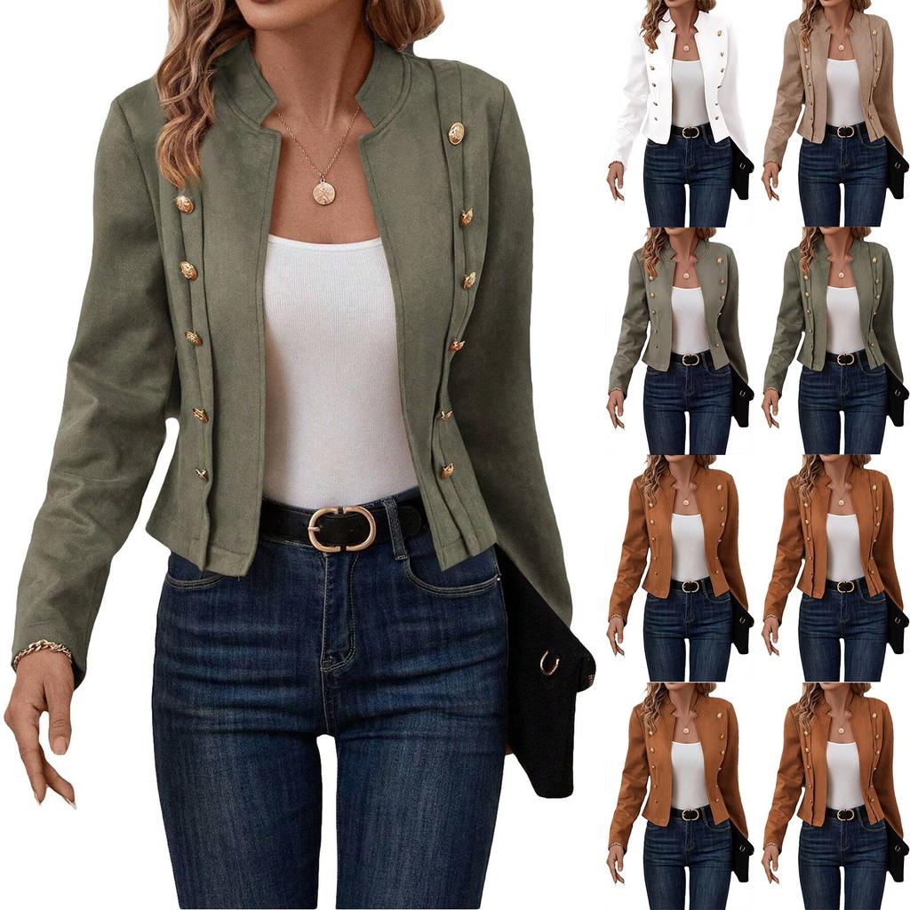 Damen Einfarbige Zweireiherjacke Wildleder Vintage Langarmjacke