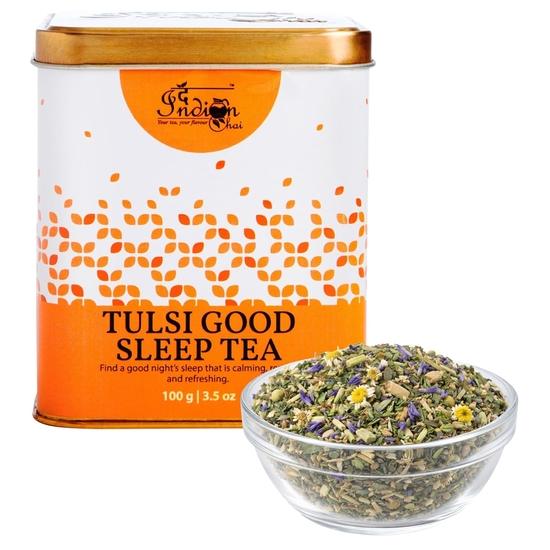 Krishna Tulsi, Rama Tulsi, Vana Tulsi, Kamille, Ashwagandha-Wurzeln, Gotu Kola, Moringa-Blätter, Lavendel, Zitronengras, Kardamom und grüne Minzblätter.