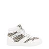 Introducing the Ferragamo Marvelous Leather High-Top Sneaker from renowned brand Salvatore Ferragamo. Crafted in Italy, these fashion-forward sneakers feature brown multicolor leather with perforated detailing, iconic Gancini print, and a padded collar for added comfort. The lace-up closure ensures a secure fit, while the lightly padded insole and rubber sole provide both style and traction. Available in UK sizes, please reference the size chart for US conversions. Choose between narrow, standard, wide, or medium sizing options. Elevate your sneaker game with these authentic and stylish high-tops from Salvatore Ferragamo.