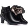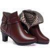 Mamas Herbst/Winter Weiche Leder-Baumwollschuhe 2021 Neue kurze Stiefel Plus Samt Dicker Absatz Schleife Damenschuhe mittleren Alters