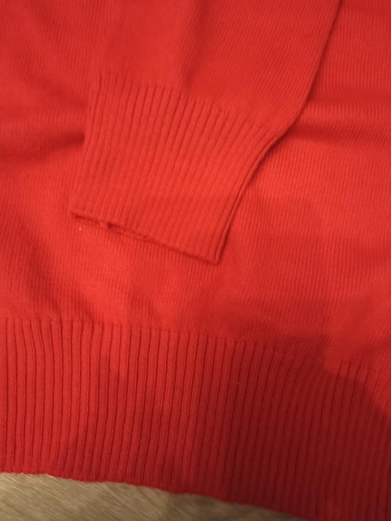 Der Pullover ist leuchtend, aber nicht zyklamenfarben, sondern rot. Aber das ist kein Problem! Er ist wunderschön: weich, warm, angenehm. Die Größe hat gepasst, ich trage 48_50