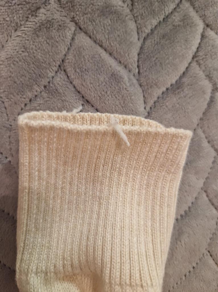 Die Qualität ist sehr niedrig. Das Material des Pullovers ist nicht Kaschmir, wie angegeben, sondern Polyester. Die Nähte am Ärmel sind schlecht verarbeitet.