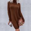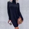 Lässige, modische und elegante Herbst- und Winter-Damen-Strickkleider mit hohem Kragen, langen Ärmeln und lockerer Passform