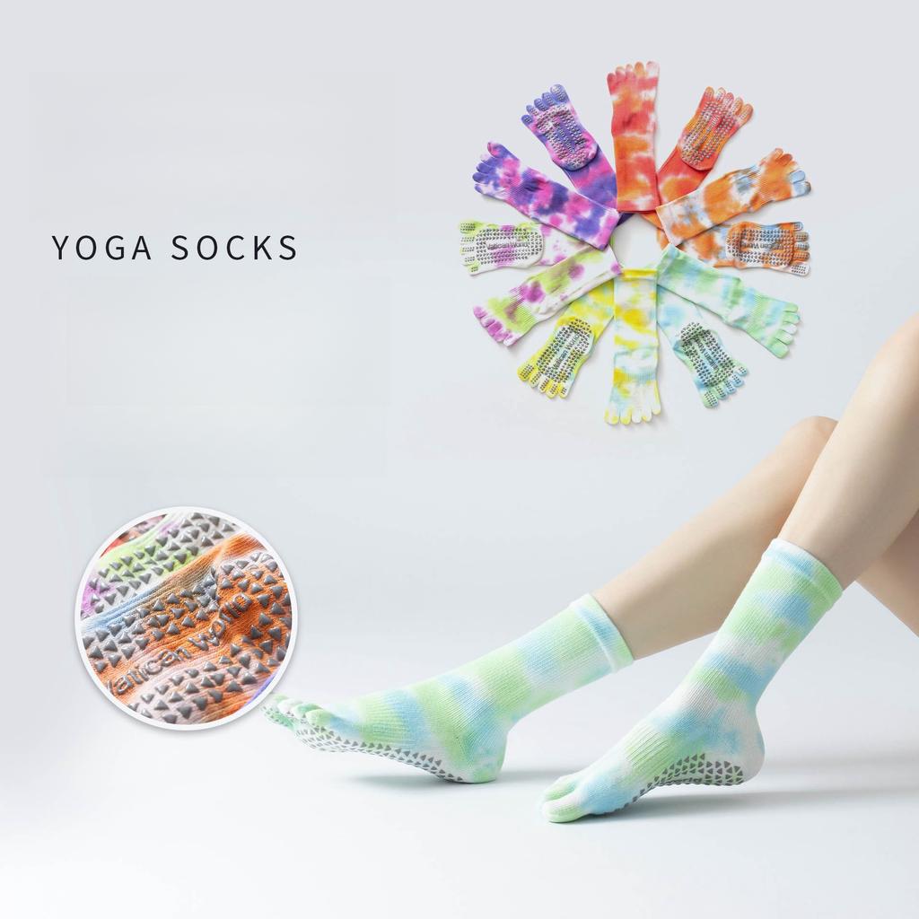 Autumn and Winter Tie Dye Yoga Five Finger Socks for Women New Style Anti Slip and Sweat Absorbing Mid Tube Pilates Socks Personalized and Versatile