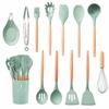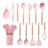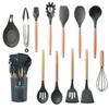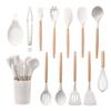 13 Stück Küchenutensilien aus Silikon mit Holzgriff und Aufbewahrungseimer, hochtemperaturbeständig und antihaftbeschichtet, Topfspatel, Löffel