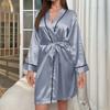Damen V-Ausschnitt Einfarbig Satin Robe Seide Kimono Bademantel Brautjungfer Hochzeit Braut Party Roben