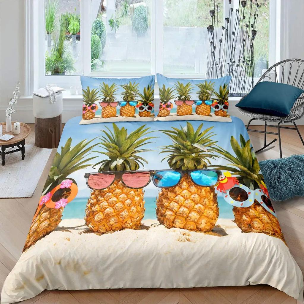 Ananas Bettbezug Set King Size Gelb Geometrisches Ananas Bettwäsche Set Seaside Strand Thema Frucht Bedruckte Bettdecke