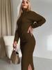 Samt-Rollkragen-Hemd für Damen Herbst und Winter Neues Kleid mit langem Schlitz für Damen