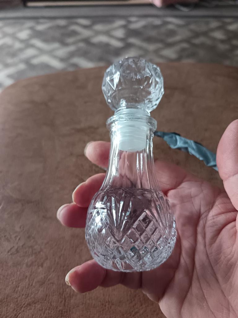 Eine kleine, hübsche Flasche, der Korken sitzt fest, aber wenn man sie umdreht, läuft sie etwas aus