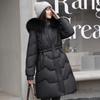 Mittellange, verdickte Daunenjacke für Damen mit Kapuze und Baumwolljacke mit großem Kragen