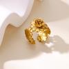 Muschel Hohl Blume Spitze Titanstahl Ring Französisch Schlicht Retro Öffnend Damen Verstellbarer Ring