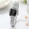 Elegante Damenuhr mit quadratischem Design und Netzkette, schlichtes Temperament, Damenuhr im Retro-Stil, leichte Luxusuhr, kleine quadratische Uhr