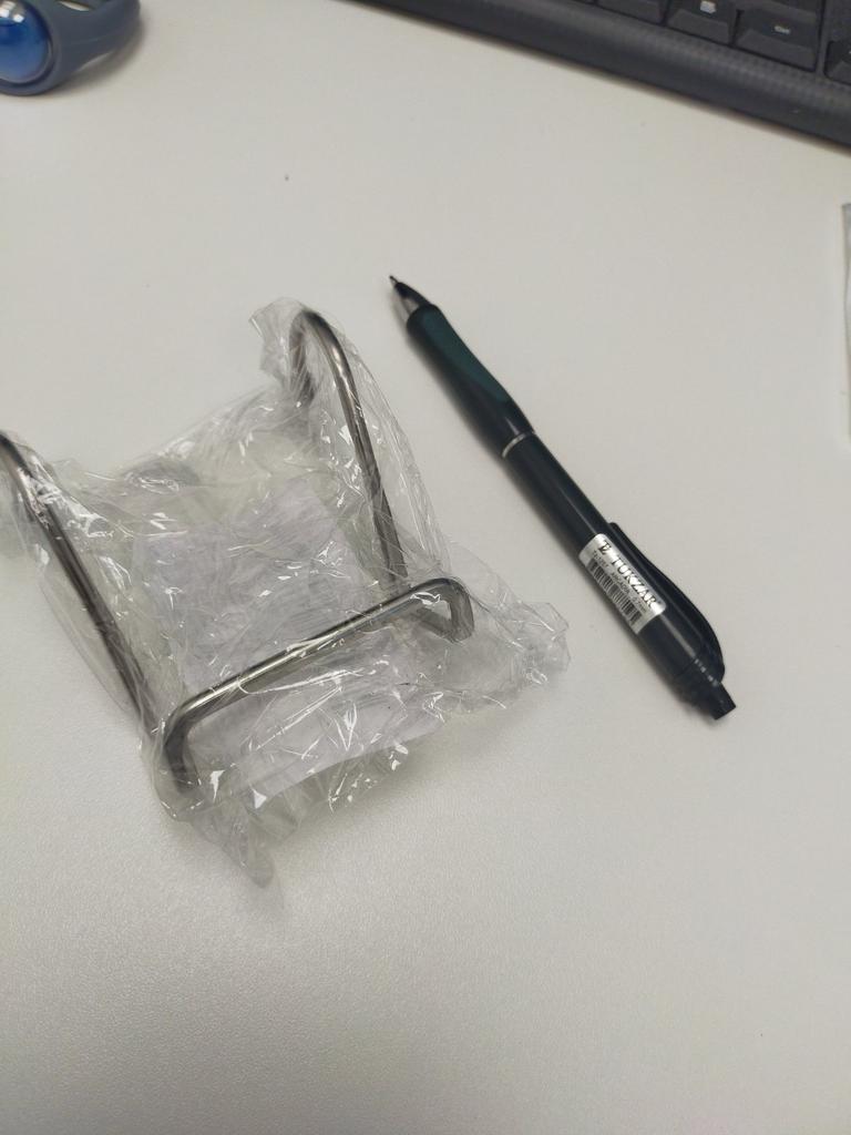 Ziemlich stabiler Metallhaken. Hat Silikonspitzen.+