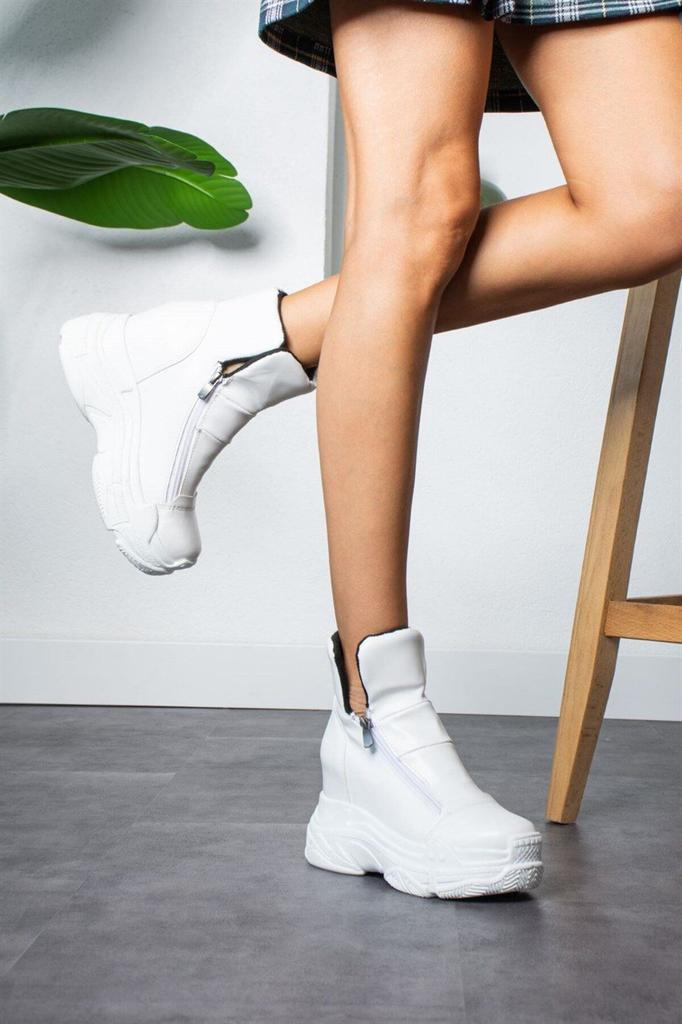 Women Modern Chic Fashion Crows White Hidden Heel Leather Boots