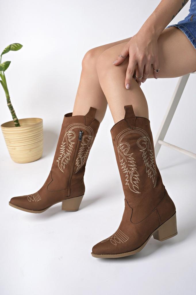 Women Modern Stylish Fashion Boots Boots Faux Leather Suede Tan Suede Embroidered New Season Cowboy Boots