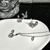 Pink Synthetic Zircon Rabbit Jewelry Sets Earrings Necklace for Women