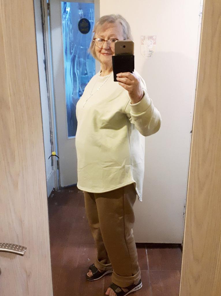 Größe 54 ist zu groß. Farbe ist fast weiß. Warm und weich