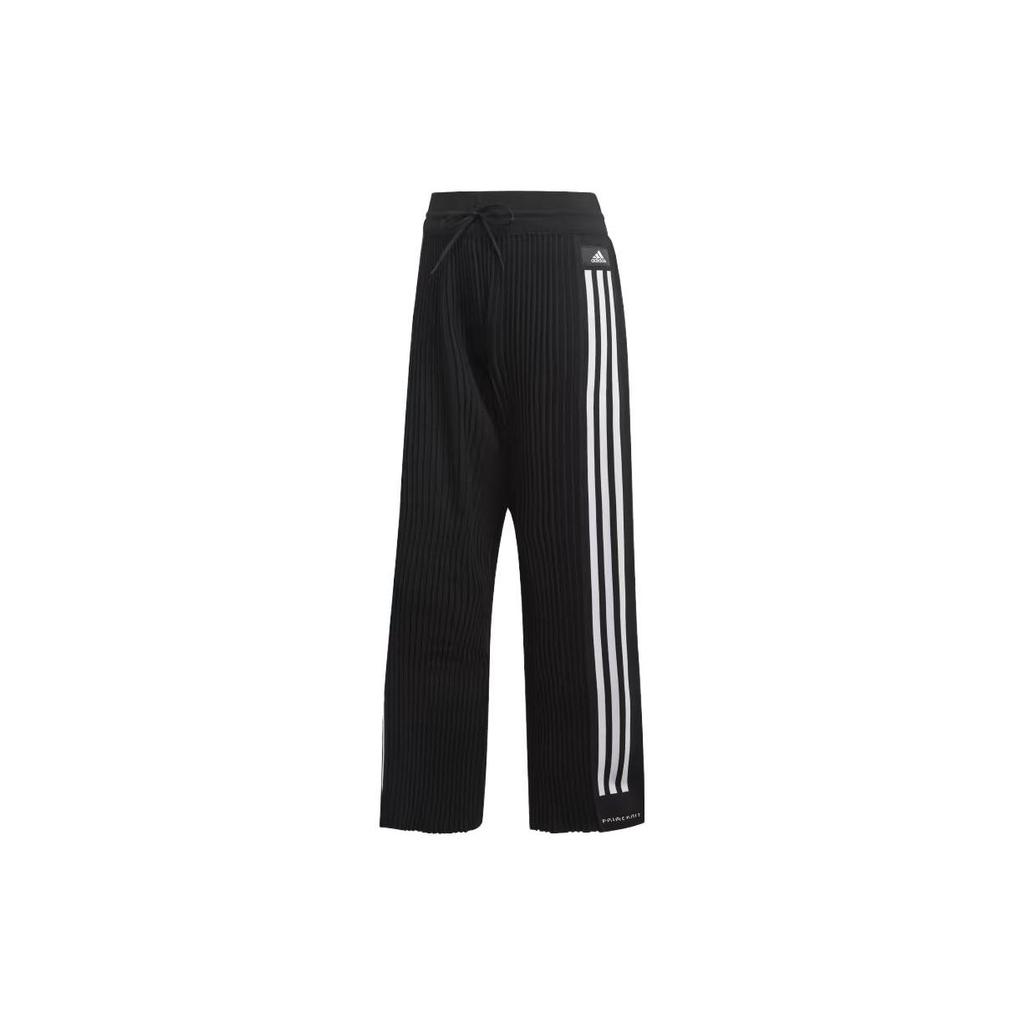 Adidas Gestrickte Plisseehose Logo Streifen Kordelzug Vintage Sport Gerade Freizeithose Damenhose Schwarz FS2400