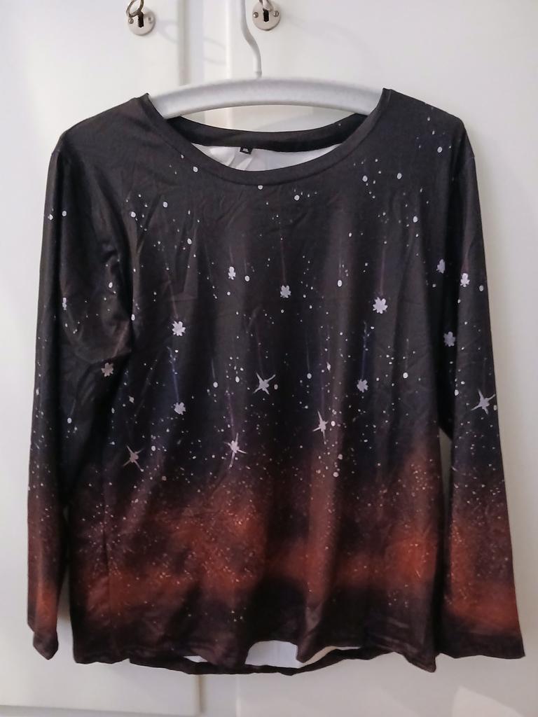 2024 Damen Rundhals Langarm T-Shirt Tops Modische Farbverlauf 3D Sternenlicht bedruckte Tops Winter Herbst Sweatshirts