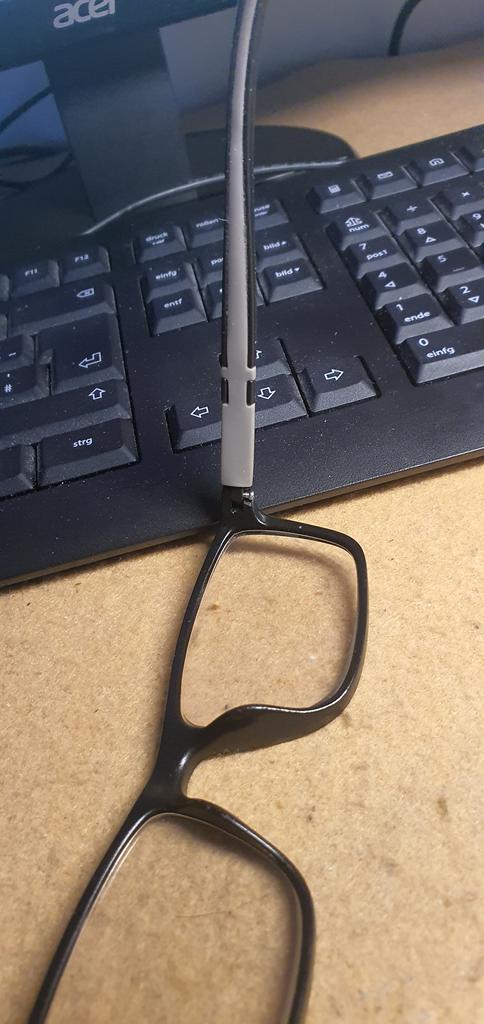 Eine der beiden Brillen ist bereits gestern am Bügel abgebrochen. Ohne ungewöhnliche Belastung.