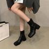 Herbst Winter Frauen Stiefeletten Fashion Square Toe Zurück Reißverschlüsse Schuhe Vintage Square Heels Damen Kurze Booties