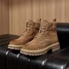 Retro Kuhveloursleder Plateau Stiefel für Damen Herbst Winter Neue Designer Lässige Damen Erhöhung Schuhe Mode Arbeitsstiefel Weiblich