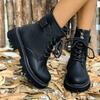 fashion Women's Fashion Combat Boots Black Lace Up Platform Ankle Boots Women Autumn Winter Buckle Non Slip PU Leather Botas Mujer 2024