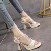 Mode 2024 Neue Sandalen Plateau Peep Toe Damen Dicke Hohe Absätze Mode Veloursleder Schnallenriemen Sandalen Elegant Damen Sommer Schuhe