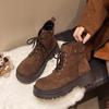 Mode Damen Wildleder Knöchel Plateau Schneestiefel Mode Mittelhoch Absätze Lässige Sneaker Schuhe Winter 2025 Trend Retro Sport Schnürstiefel Damen