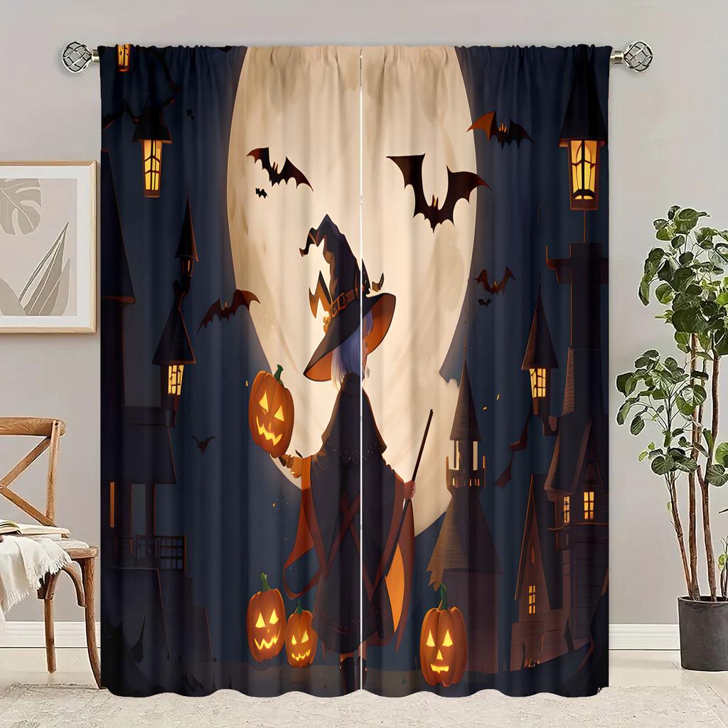 2 Stück - Halloween - Bedruckter Vorhang - Polyestermaterial - geeignet für Schlafzimmer, Wohnzimmer, Arbeitszimmer privater Vorhang