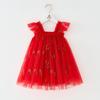 Sommer Weihnachten Kinder Mädchen Kleid Druck Ärmelloses Layered Tüll Kleid Plüsch Ball Hut Weihnachten Kleidung