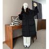 Damen-Wintermantel mit Kapuze, lockerer Overknee-Overknee mit Kapuze und Daunen