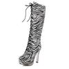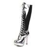 Mode Sexy Hohe Knie Stiefel Frauen Schuhe Plattform Druck Leder Hohe Stiefel Für Frauen Silber Herbst Winter Party Lange Stiefel schuhe Damen