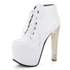 Mode Luxus Stiefeletten Frauen Plattform Sexy High Heels Kurze Stiefel Silber Rot Lace Up Fetisch Party Tanzschuhe Damen Große Größe 45