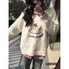 Pullover mit Rundhalsausschnitt für Damen, kontrastierende Farben, Kordelzug, Buchstabenetikett, lockerer, lässiger Strickpullover mit süßer Kirsche