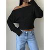 Off Shoulder Pullover Damen Herbst Winter Fashion Solid Langarm Strickpullover Lässig Elegant Chic Jumper Schwarz