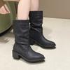 2025 Women's Chunky Single Boots Autumn New Round Head Fold Sleeve Anti-slip Wear Comfortable Mid-calf Boots