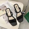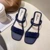 Damen Sandalen dicker Absatz Bonbonfarbe Sommer plissiertes Obermaterial eckige Zehenschuhe