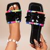 Mode Frauen Casual Schuhe Pailletten Dekoration Slipper Quadratische Zehe Flache Unterseite Bequeme Plattform Sandalen Slides Outdoor Strand Hausschuhe