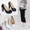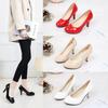 Fashion New Women's Square Heels Office Shoes 2024 Patent Leather High Heel Pumps Women Round Toe Slip-On Autumn Shoes for Female