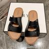 Damen Leder Hausschuhe Sommer Damen Casual Hausschuhe mit Doppelknopf Ochsen Sehne Sohle Outdoor Rutschfest Strand Hausschuhe