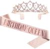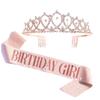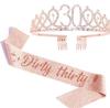 Birthday Sparkly Crown Girl Rhinestone Headband Belt Queen Etiquette with Birthday Decorating Party Supplies Estuche Alpicool