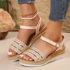 Mode Damen Sandalen Mode Stoffverschluss Offene Zehen Dicke Sohle Keilabsatz High Heels Sandalen 2024 Klassische Freizeit Sandalen Schuhe für Damen