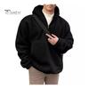 Winter-Kapuzenpullover für Herren mit großer Fronttasche, doppelseitiger Flanell-Kragen mit halbem Reißverschluss, lockeres Thermo-Oberteil mit langen Ärmeln und elastischen Bündchen, lässiger Hoodie für den Alltag