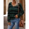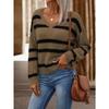Vintage Gestreifter Farbkontrast Pullover Damen Übergröße Gestreift Locker Lässiger Stil V-Ausschnitt Pullover Strickpullover