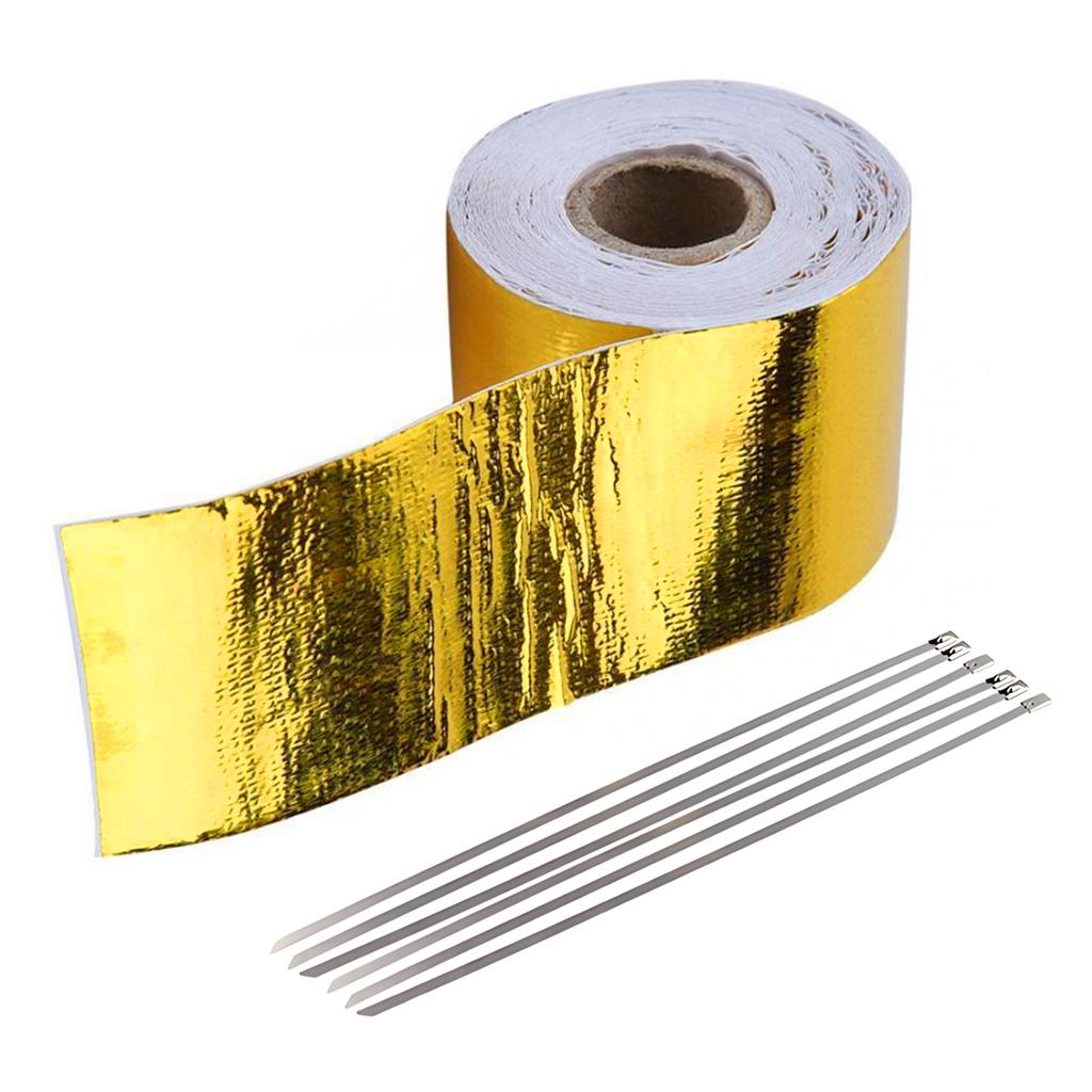 Car Exhaust Pipe Gold Thermal Exhaust Tape Heat-Resistant Golden Aluminum Foil Tape Turbo Heat Exhaust Thermal Wrap Tape