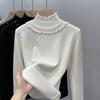 Halbhoher Rollkragenpullover mit Rüschenkante Damen Einfarbig Einteiliger Samt Dick Gestrickter Pullover Lässig Locker Warm Herbst und Winter